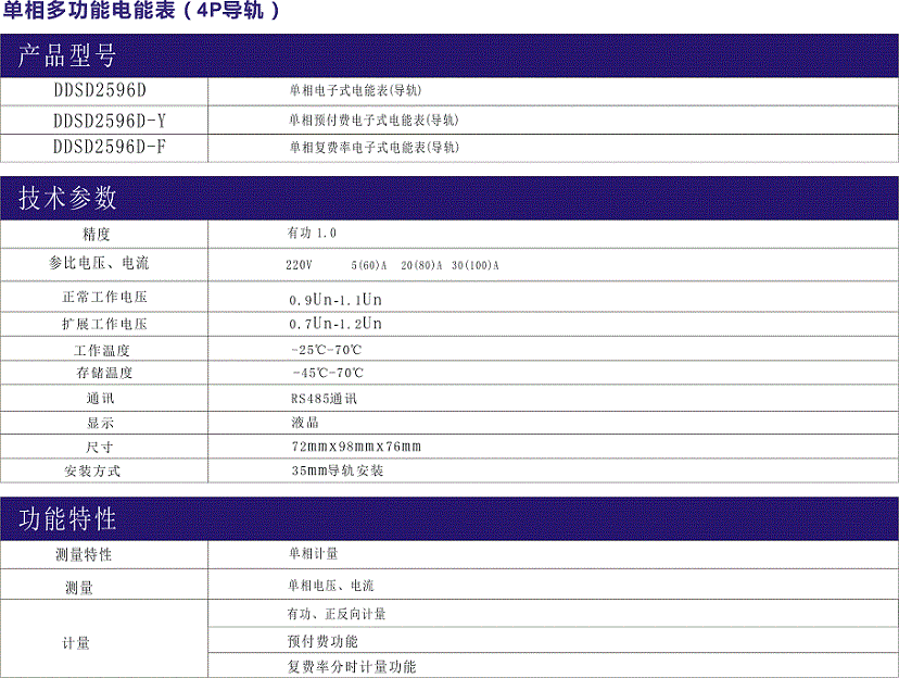 DDSY2596D系列單相電子式多功能電能表(導軌)是百瑞順開發(fā)的計量額定頻率為50HZ的單相交流有功電能,由8位(6+2)LCD顯示有功總電量,該表設有紅外和RS485通訊接口,通訊DL/T645或Modbus-RTU可選,具有可靠性好、體積小、重量輕、外表美觀、35mmDIN標準導軌式安裝等特點,并具有良好的抗電磁性干擾、低自耗節(jié)電、高精度、高過載、高穩(wěn)定性等特點。能有效及時地滿足用戶對用電現代管理的需求,可應用于電廠、變電站、中高壓系統(tǒng)商業(yè)、工業(yè)及各類企事業(yè)單位。