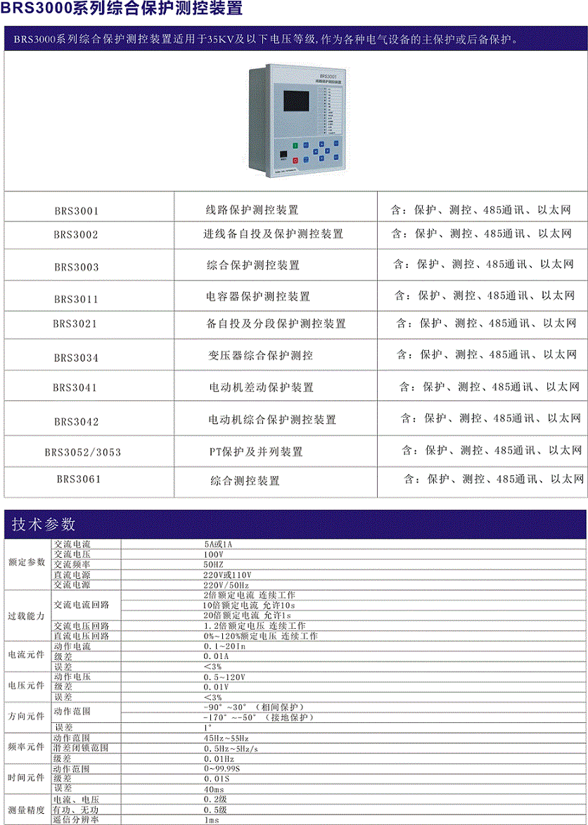 BRS3000系列保護測控裝置是在多年實踐應用和運行經(jīng)驗的基礎(chǔ)上,吸取了國內(nèi)外微機保護裝置現(xiàn)有的先進技術(shù),研制推出的新一代微機保護測控裝置。廣泛適用于電力、水利、石油、化工等行業(yè)35KV及以下電壓等級系統(tǒng),作為各種電氣設(shè)備的主保護或后備保護。