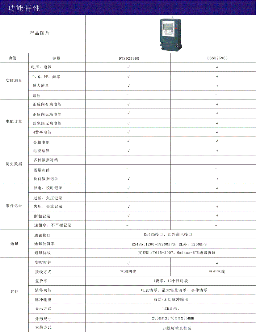 DTSD/DSSD2596G系列三相電子式多功能電能表是百瑞順開發(fā)的可實現(xiàn)有功和無功電能計量、復費率等多種功能一體的新一代智能電能計量產品,其性能穩(wěn)定,功能強大,抗干擾能力強。