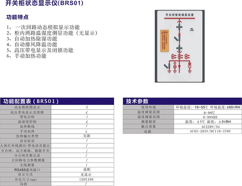 BRS01高壓開關柜狀態(tài)顯示儀是根據(jù)當前中壓系統(tǒng)開關柜技術發(fā)展而設計開發(fā)的一種新型的模塊化、狀態(tài)顯示裝置。該系列產品集回路模擬指示、帶電指示及閉鎖功能、溫濕度測量、自動加熱除濕控制、自動排風降溫控制、斷路器分合閘狀態(tài)指示、儲能、接地開關指示、手車位置指示等功能。該系列產品以一體化布局配套裝備于開關柜,將簡化開關柜的面板結構設計,美化開關柜的面板布局,完善開關狀態(tài)的指示功能和安全性能。